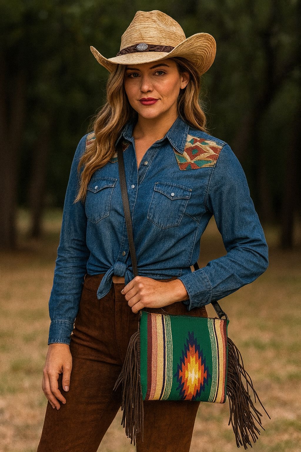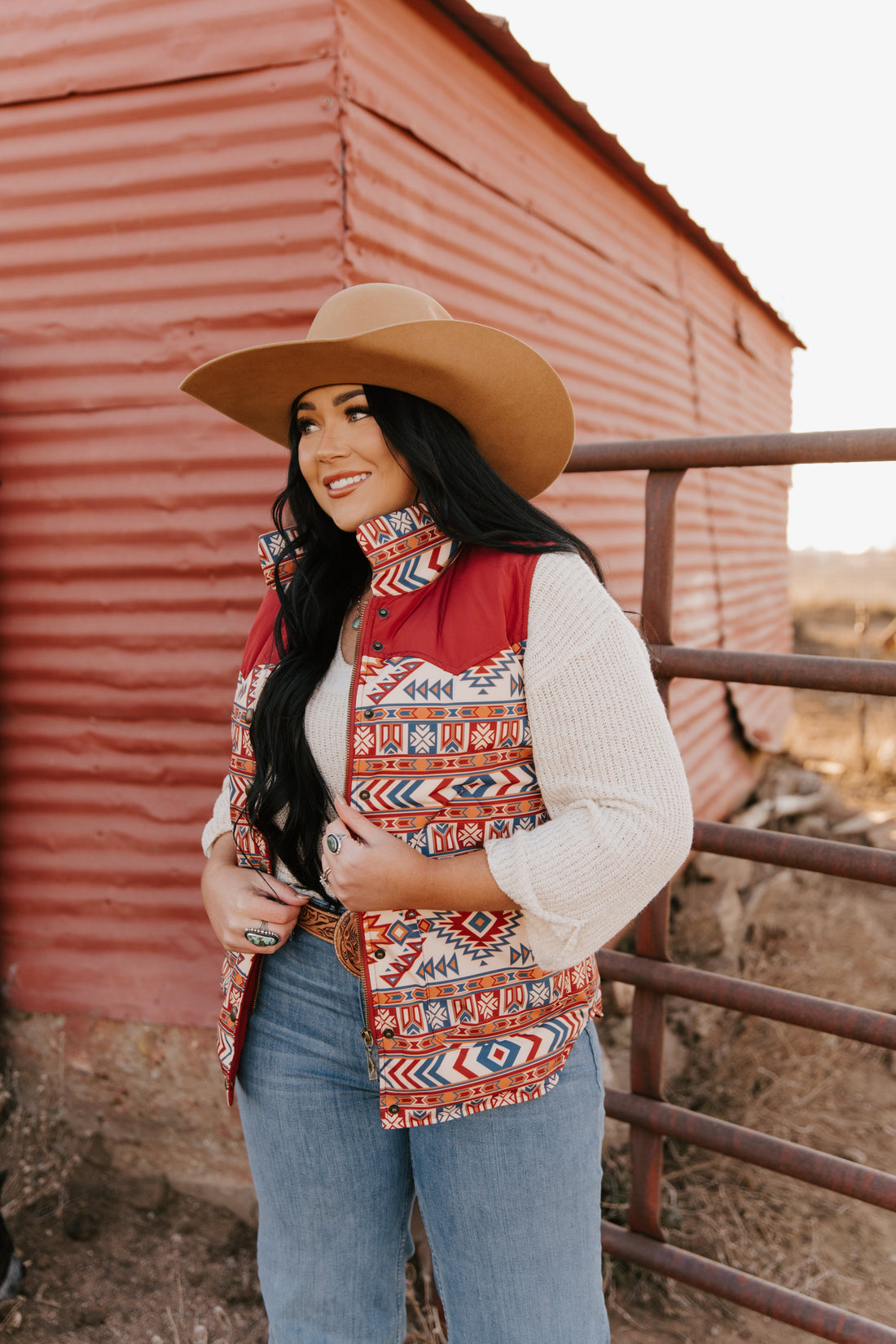 Ladies Poly Fill Vest in Two Tone Aztec Color Combinations - With Western Yokes
