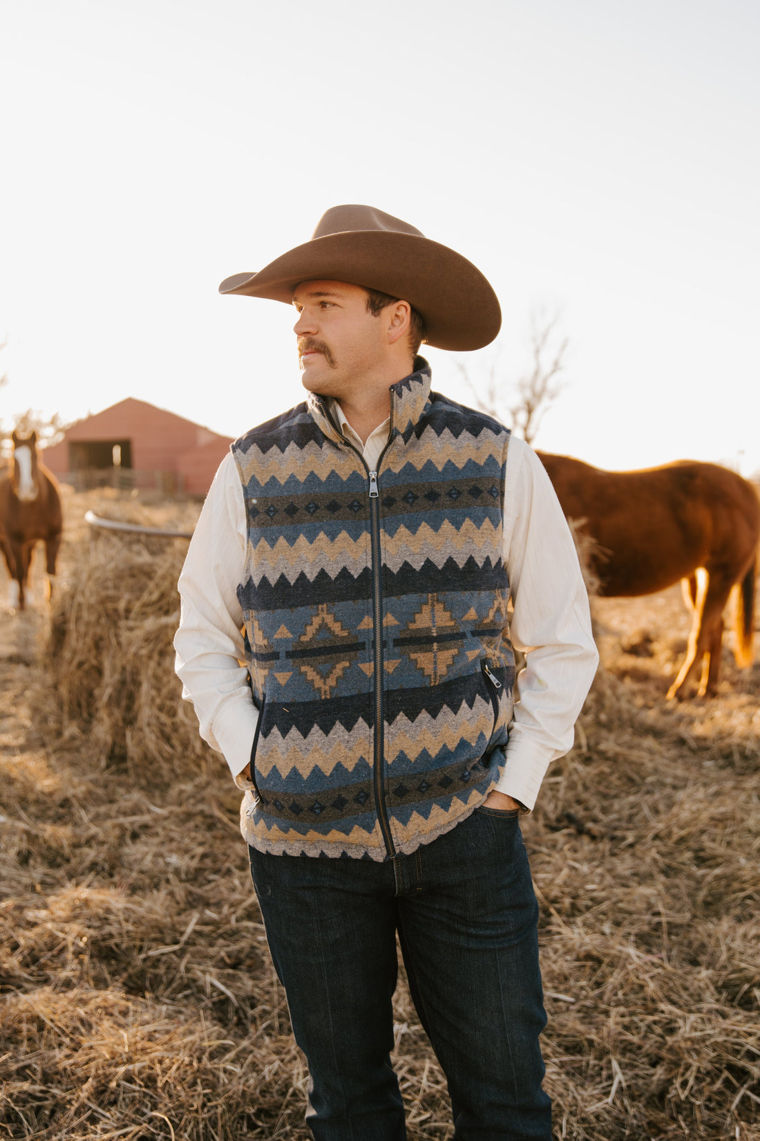 Men's Curduroy Vest with Aztec Design and Conceal & Carry Pocket