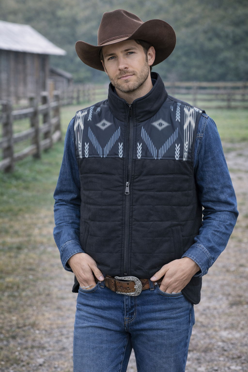 Men's Curduroy Vest with Aztec Design and Conceal & Carry Pocket