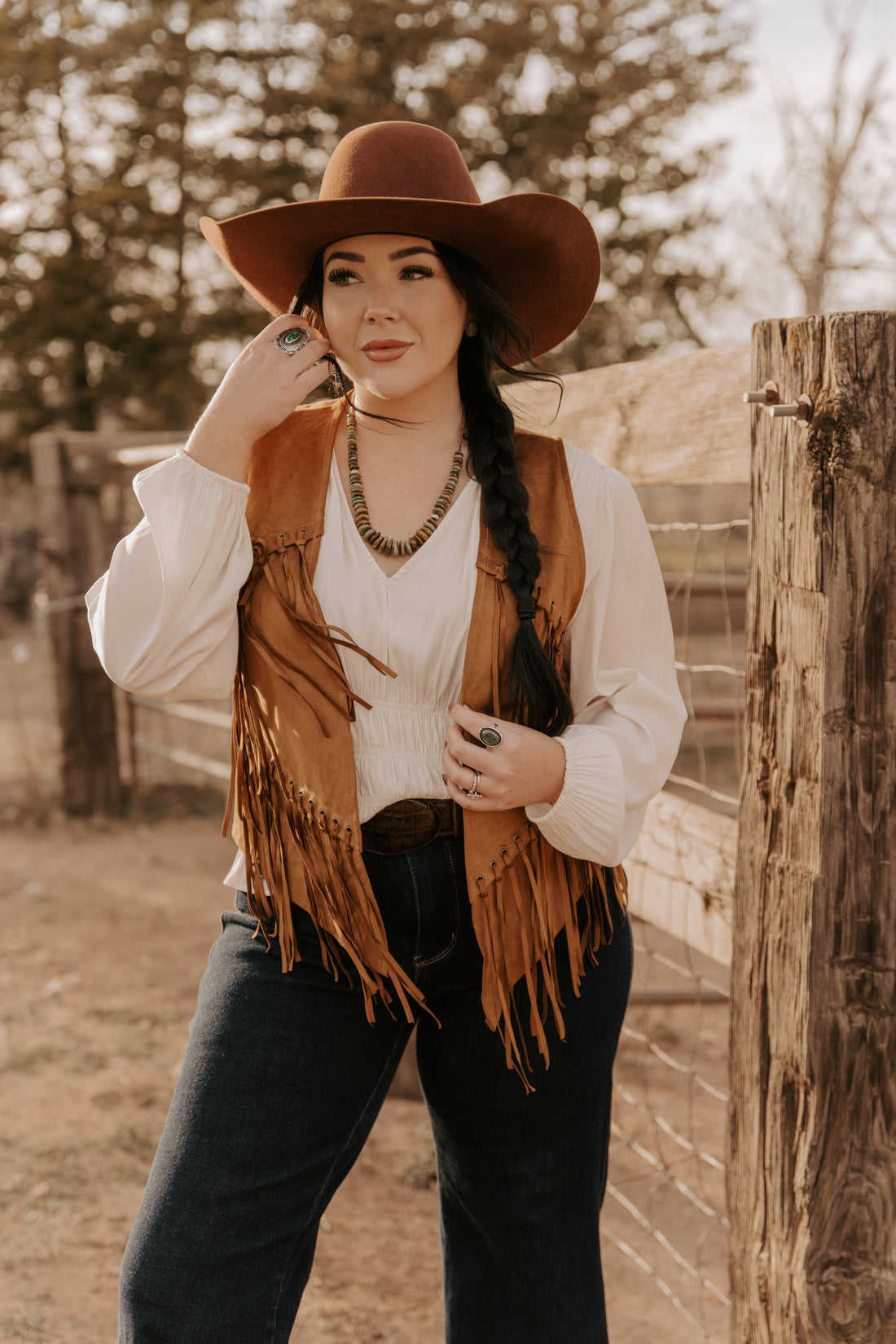 Elevate your wardrobe with the Ladies Denim paired with an Aztec Fashion Jacket, blending classic...