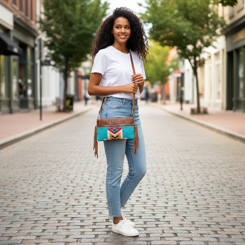 Embrace a blend of rugged charm and refined design with the Western Scrossbody Bag with...