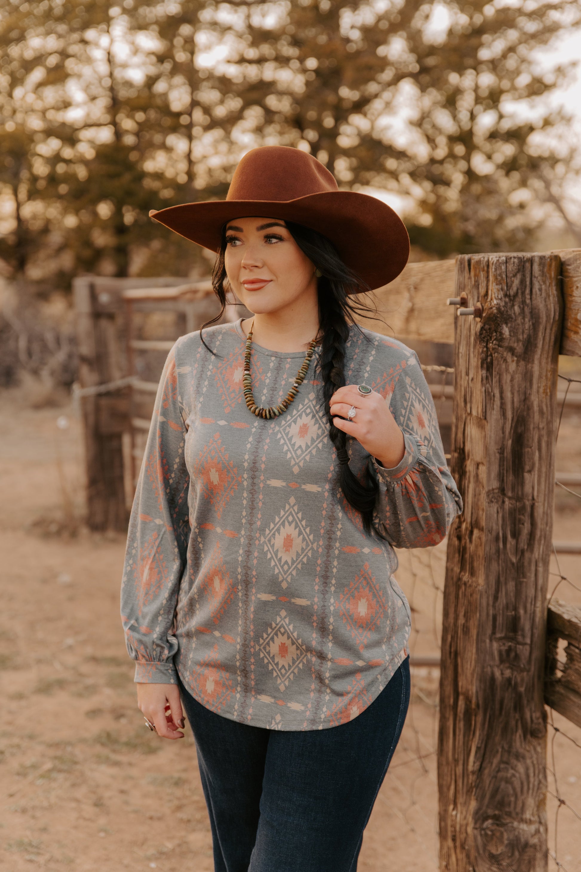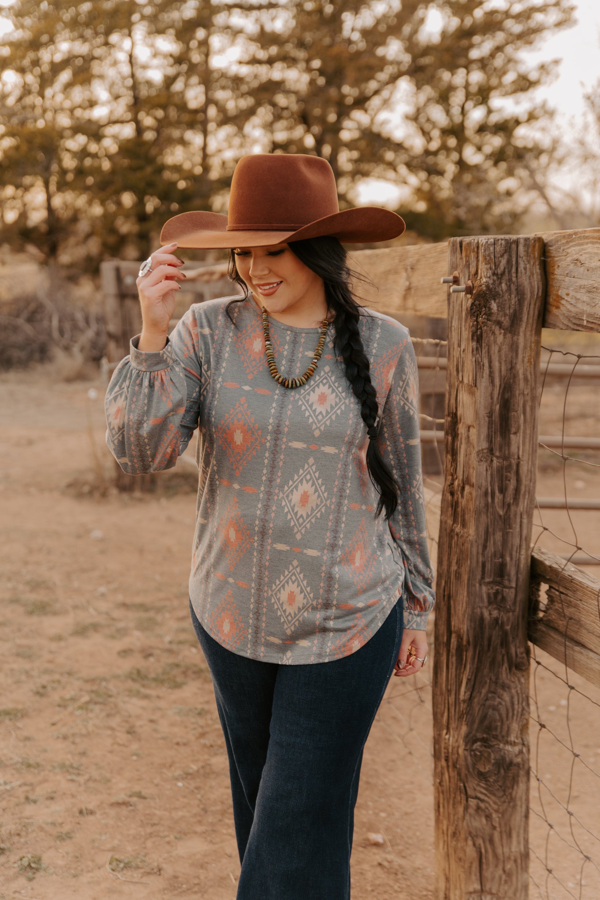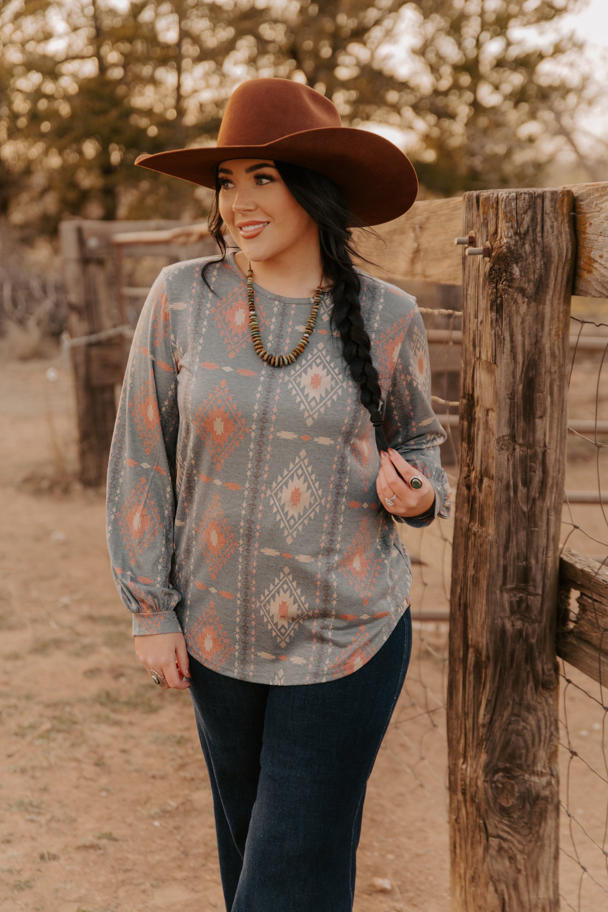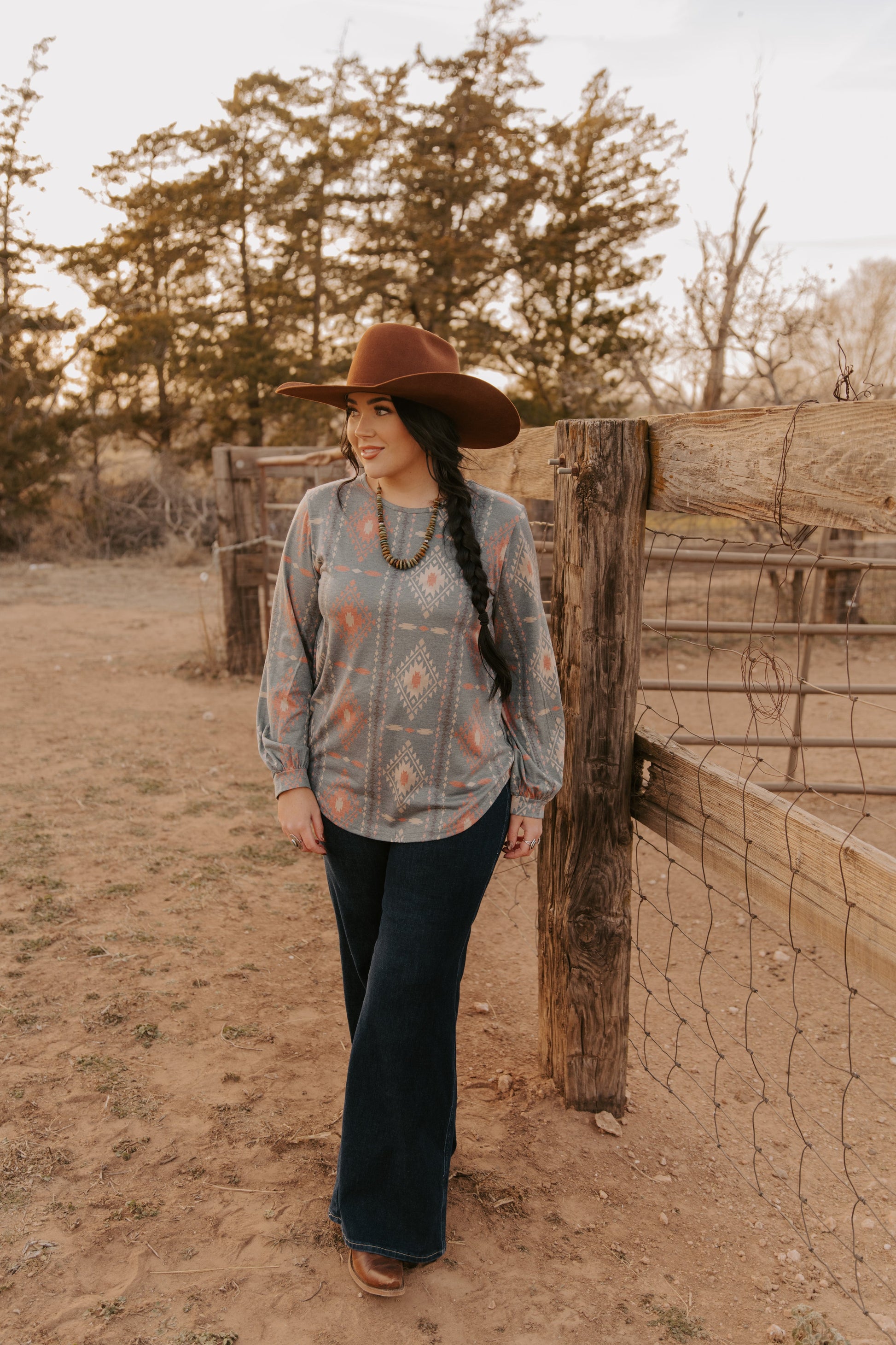 This Ladies Aztec Knit Top features a distinctive Aztec pattern and stylish bell sleeves, blending cultural design with contemporary fashion. Crafted from a comfortable knit fabric, it offers a flattering fit and breathability, making it ideal for both casual outings and dressier occasions. The bell sleeves add movement and elegance, elevating your look with subtle flair. Perfect for those seeking a unique and versatile wardrobe staple that combines tradition with modern style.