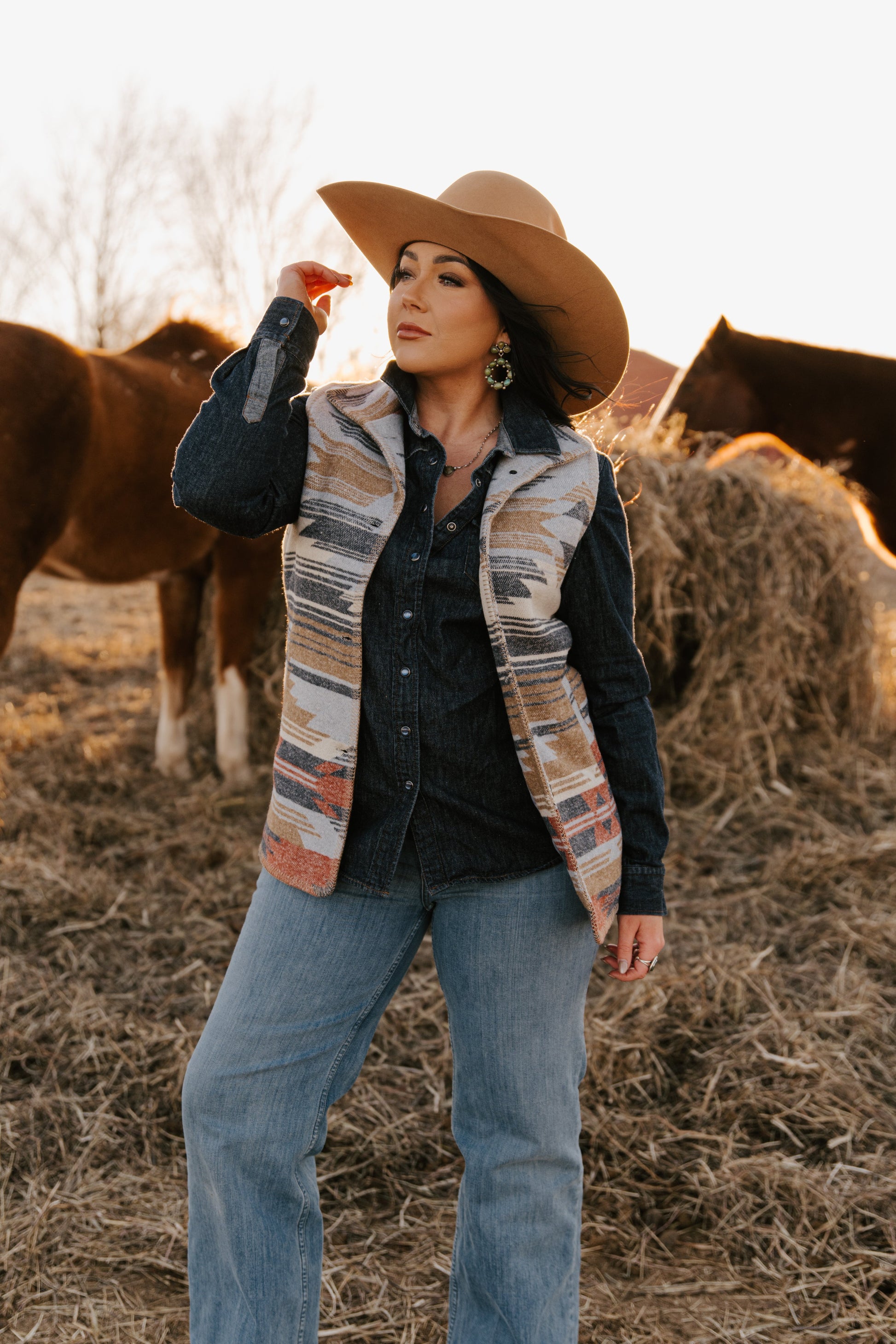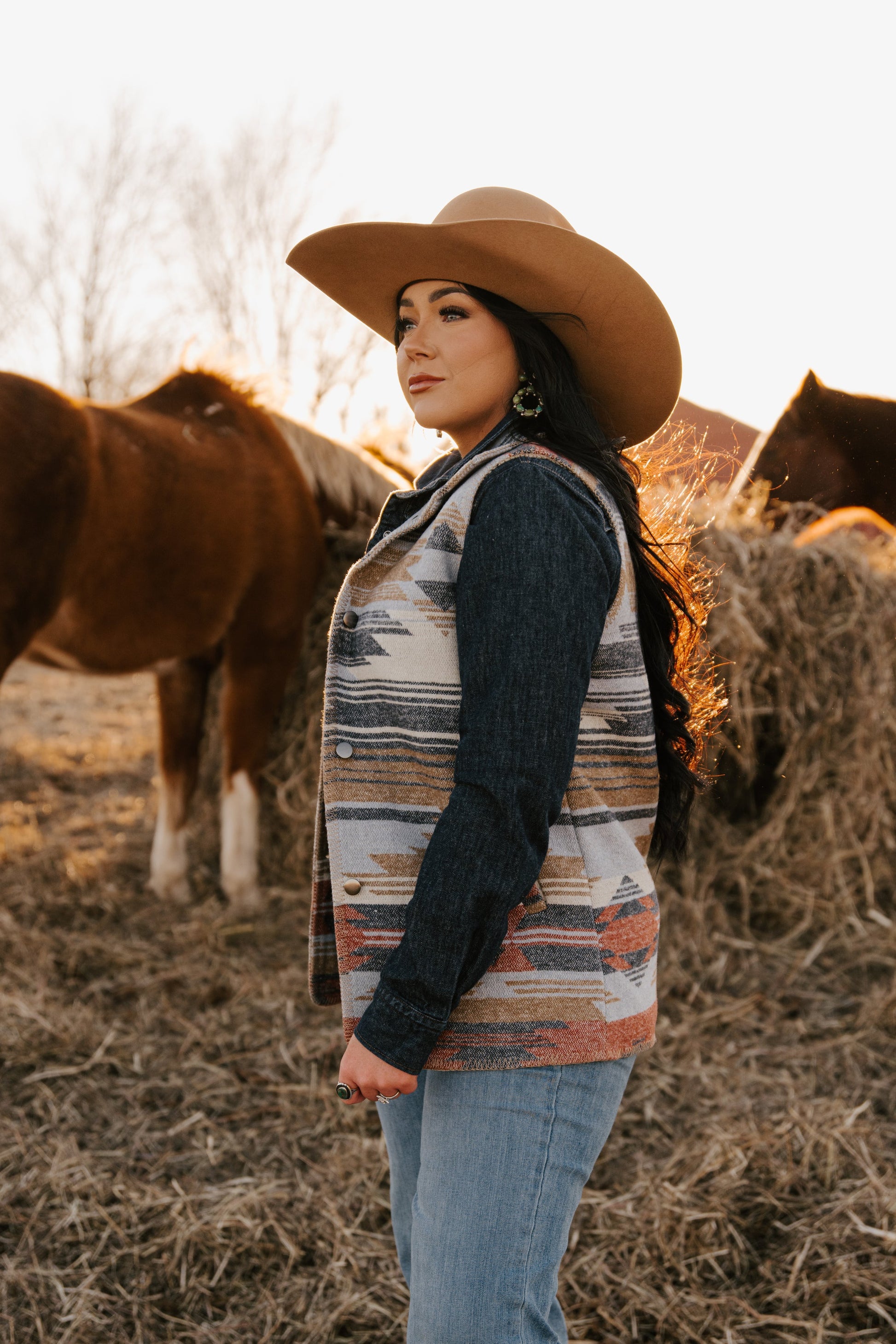 Crafted with precise blanket stitching, this Ladies Aztec Vest combines traditional design with expert craftsmanship. The intricate Aztec-inspired patterns offer a unique, timeless aesthetic while the tailored fit ensures comfort and style. Perfect for layering, it adds a distinctive cultural touch to any outfit, making it a sophisticated choice for those who appreciate heritage and quality in their wardrobe.