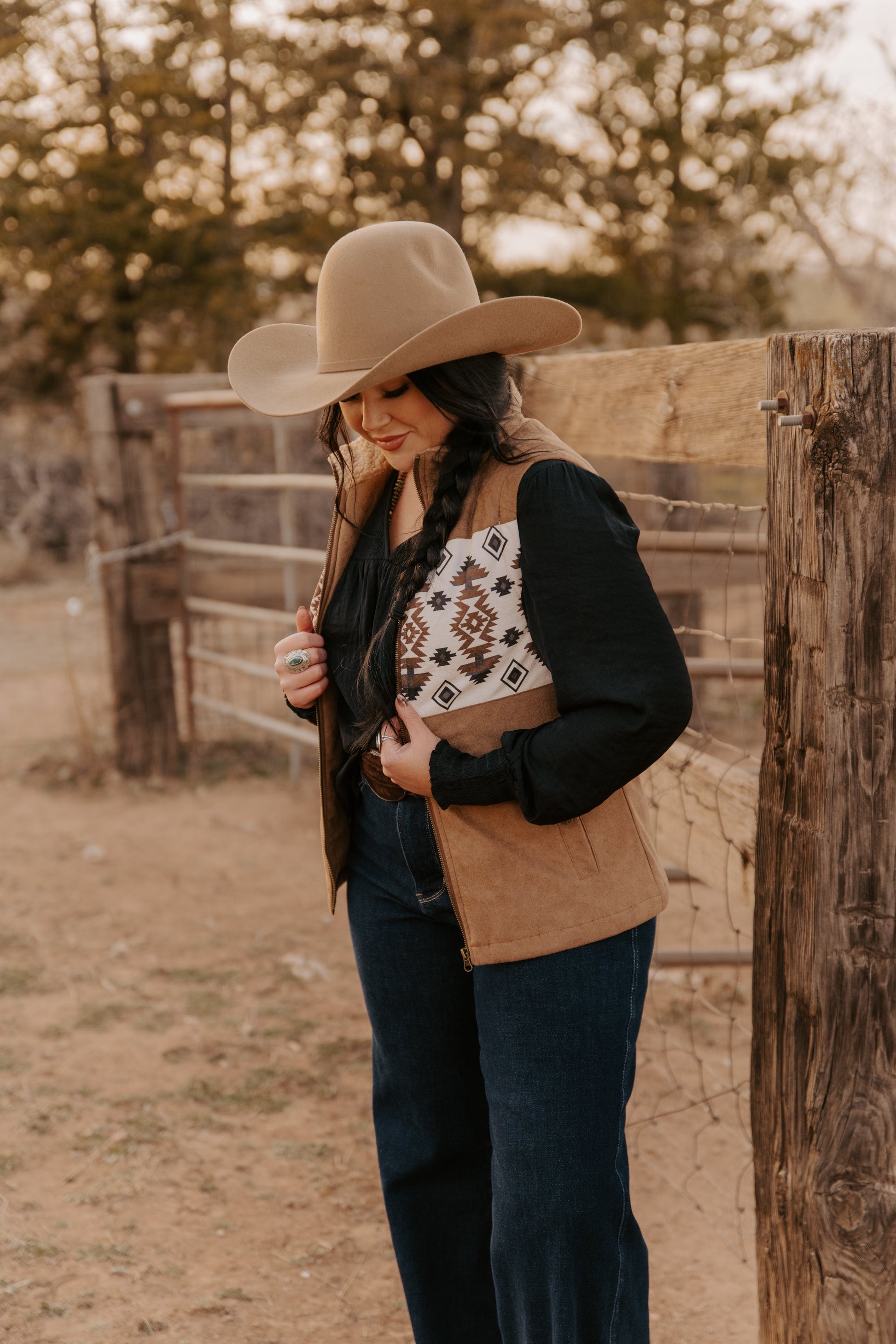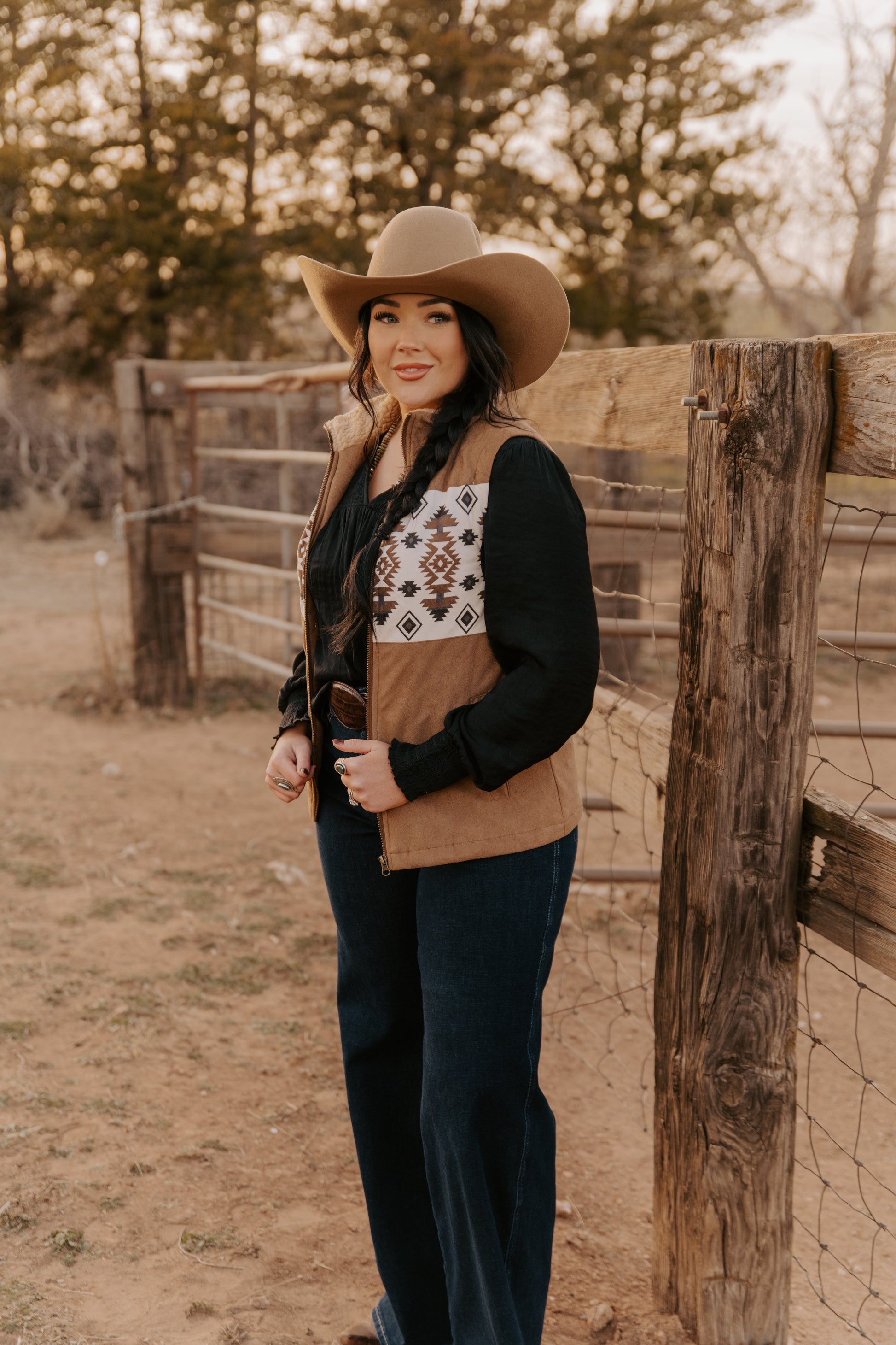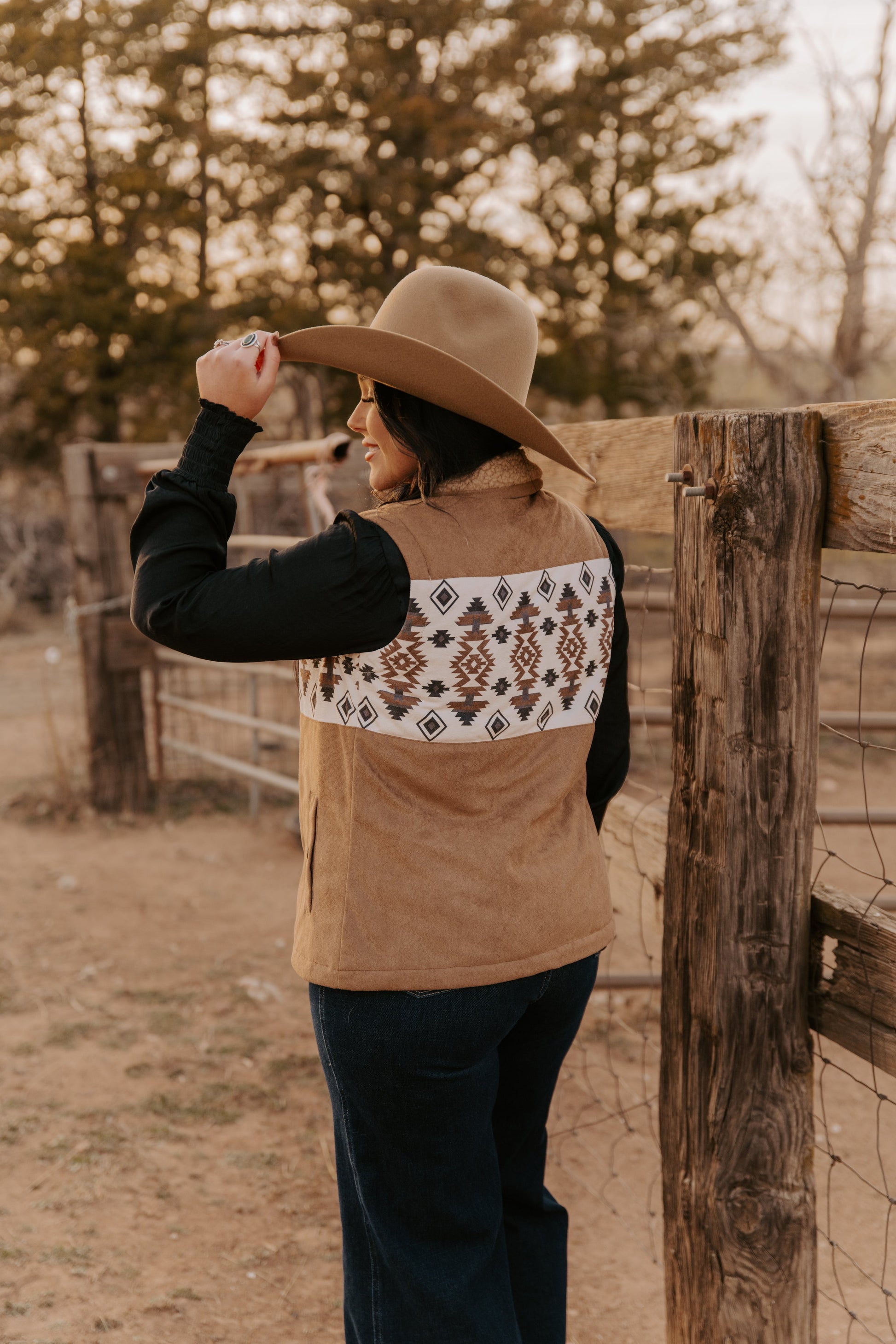 This ladies' vest combines durable polyester faux suede with striking Aztec print patterns, offering a stylish yet comfortable layering option. Designed for versatility, its lightweight fabric provides warmth without bulk, making it an ideal choice for transitional weather. The unique Aztec designs add a refined touch that enhances any casual or outdoor ensemble with cultural flair.