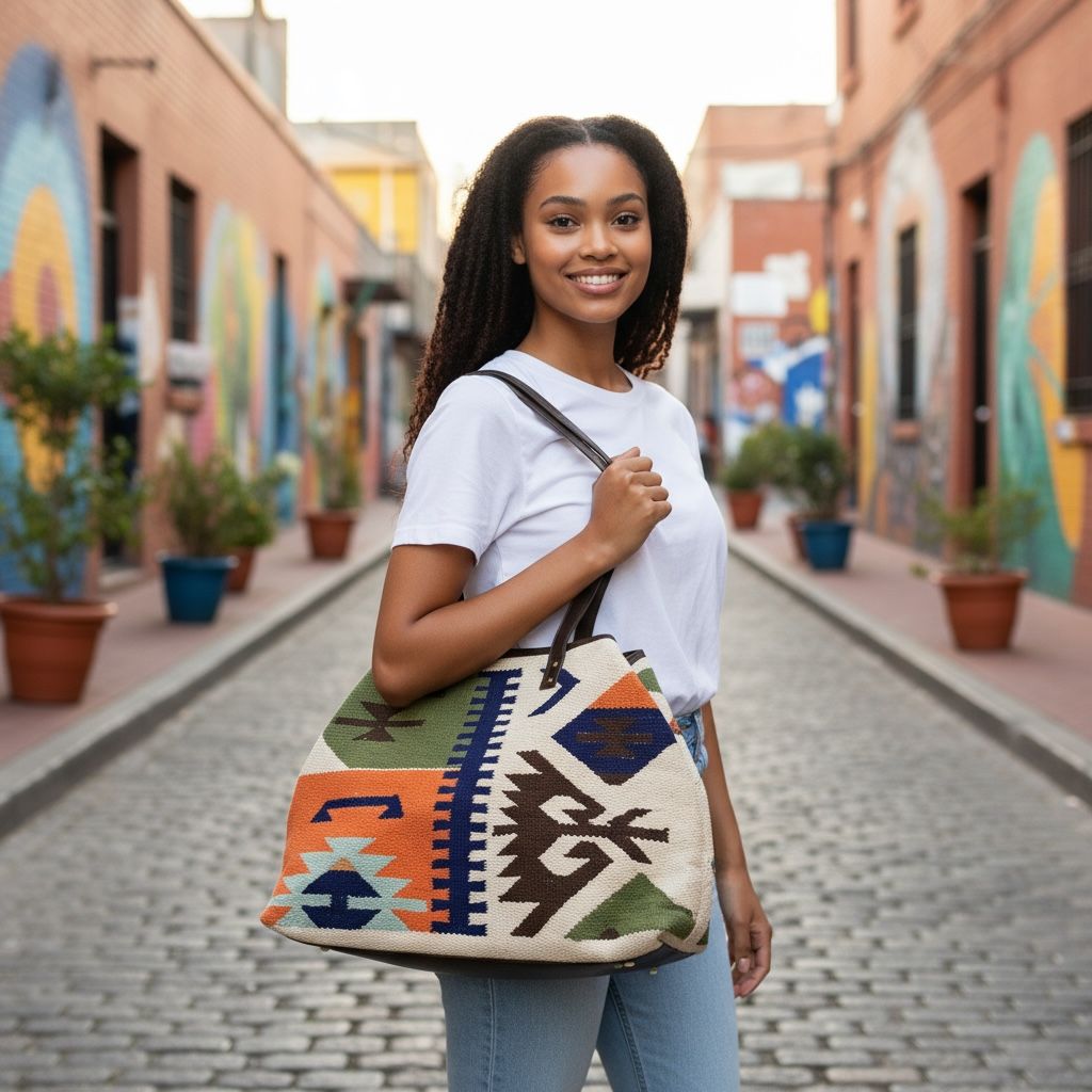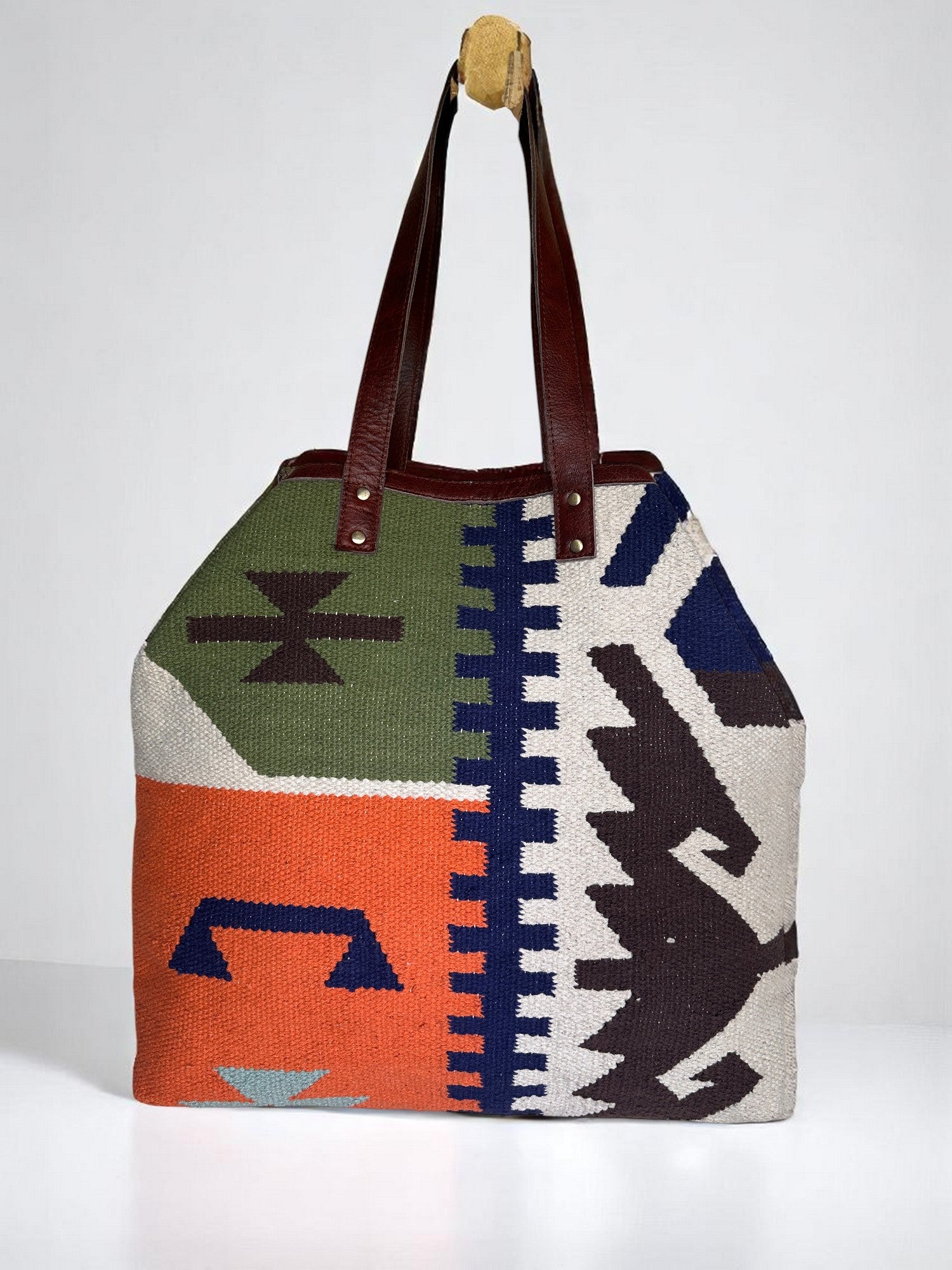 This bag crafted with durable woven fabric. The sturdy brown genuine leather handles and trims making it perfect for carrying. Spacious interior ensures plenty of rooms for books and everyday essentials.