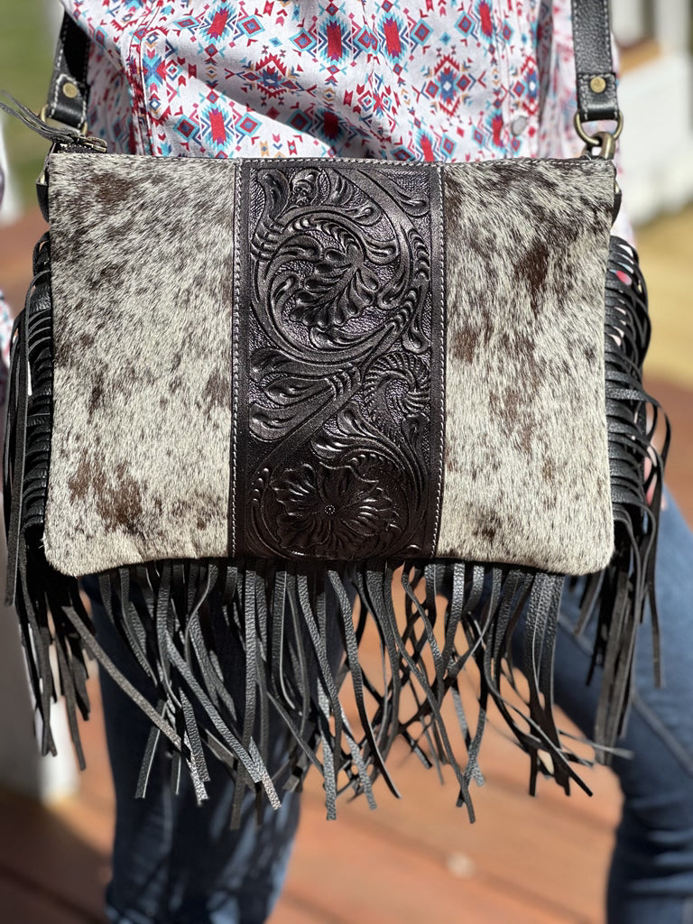 Embrace a blend of rugged charm and refined design with the Western Scrossbody Bag with Fringes T-1355-BLK. Crafted specifically for women who appreciate enduring style, this bag features intricate fringe detailing that adds movement and character, while its structured form ensures practical everyday use. The crossbody strap allows for comfortable, hands-free wear, making it ideal for active lifestyles or casual outings. Designed to complement a variety of wardrobe choices, this bag delivers both function and a distinctive western flair.